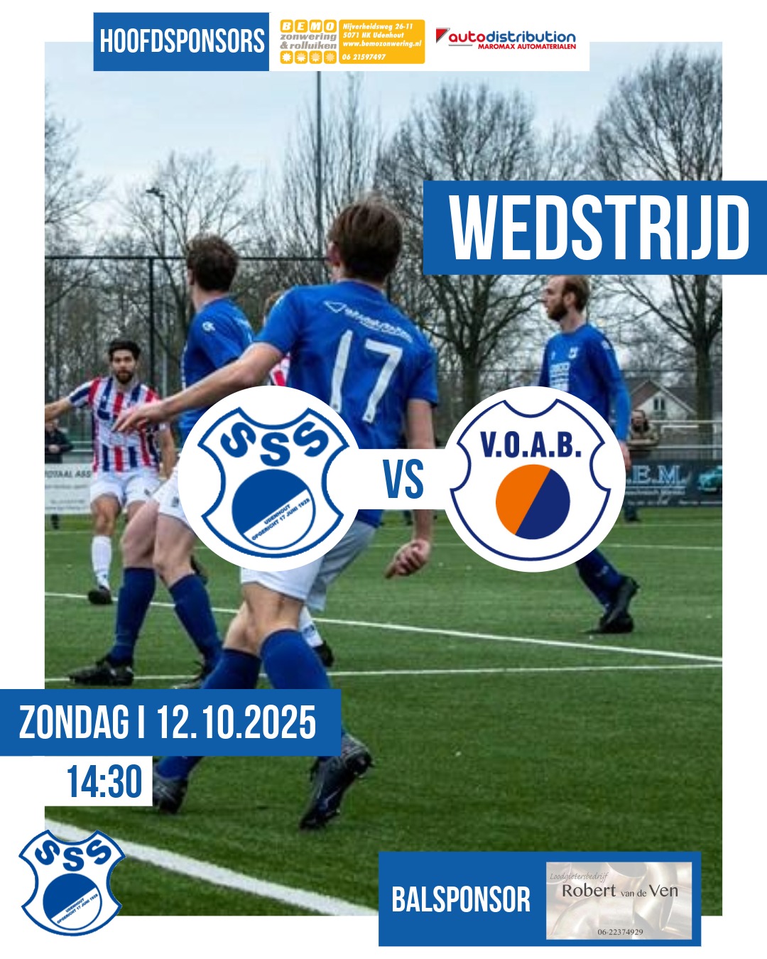 Op zondag 12-10-2025 speelt SVSSS 1 tegen VOAB 1. De balsponsor voor deze wedstrijd is Loodgietersbedrijf van de Ven.