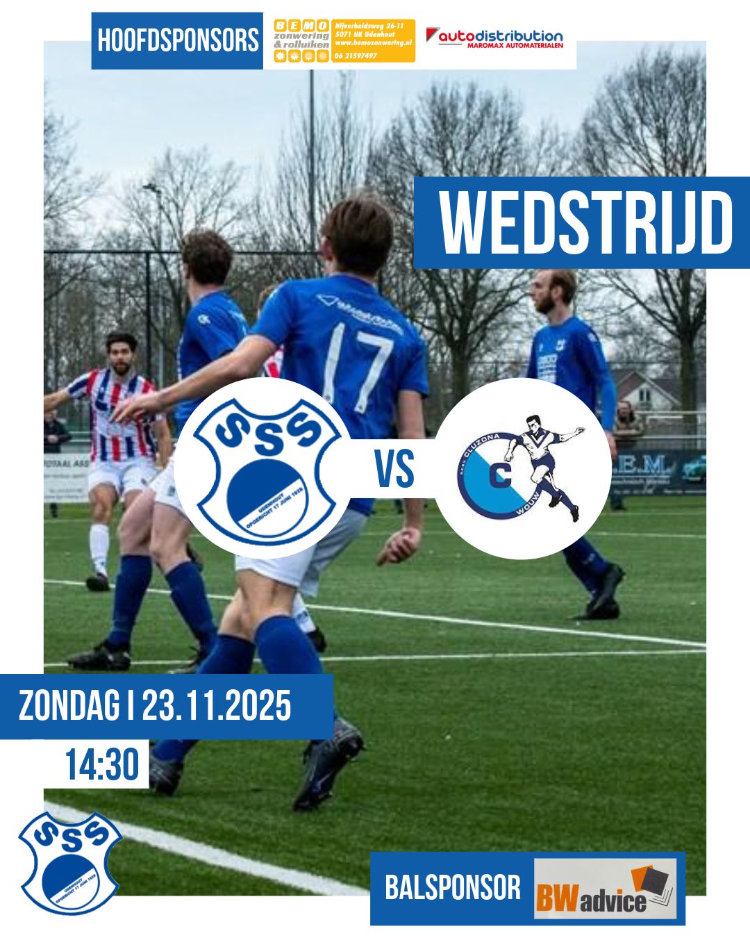 Op zondag 23-11-2025 speelt SVSSS 1 tegen Cluzona 1. De balsponsor voor deze wedstrijd is Bwadvice.